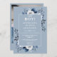 Este elegante convite para chás de fraldas florais azuis e empoeirados pode ser personalizado com a sua informação na tipografia moderna e uma fotografia especial no verso. Projetado por Thisnotme©