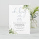 Um convite elegante, na moda, chá de fraldas, com tipografia azul elegante e empoeirada e bonito folhagem botânica. Projetado por Thisnotme©