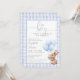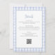This charming baby shower invitation features a cute little bunny holding balloons and a blue gingham background. With your registry QR code and event details on the reverse. Designed by Thisisnotme©