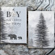 A aventura aguarda, a floresta russa urge o convite de chá de fraldas de menino em matizes azuis de cinza pastel macio, com pinheiros florestais majestosos e silhueta de montanha. Personalize o seu chá de fraldas.