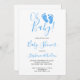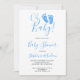 Estes Casais simples e na moda são Convidados para Bebê são decorados com tipografia moderna e pés de bebê de aquarela fofa em azul pastel. Facilmente personalizável. Para personalizar ainda mais, use a Ferramenta Design para editar a fonte, o tamanho da fonte ou a cor. Porque nós criamos a nossa trabalho de arte, você não encontrará esta imagem exata de outros designers. Original Watercolor © Michele Davies.