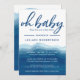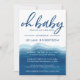 Convite de chá de fraldas de onda aquática azul com "oh baby" em uma fonte de script.