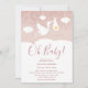 Apresentando um carregando de cegonha giro, uma entrega muito especial, em um brilho rosa e fundo cor-de-rosa pincelado, este chá de fraldas giro, borrifo ou chá é perfeito para todos os pequenos que estão a caminho. Adicione seus detalhes de celebração em tipografia elegante para criar o convite perfeito. Projetado por Thisnotme©