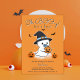 Procurando uma maneira divertida de comemorar seu filho no caminho? Este adorável convite para o chá de fraldas de Halloween apresenta um doce fantasma bebê segurando uma abóbora sorridente, completa com um pacificador azul e um chapéu de bruxa, rodeado por picos de lanternas e morcegos voadores. Perfeito para as mães que amam as celebrações do outono, este convite dá o tom para um chá de fraldas festivo e assustador. Use-o para encontros de outubro, chás de fraldas temáticos ou festas familiares em queda. Os convidados adorarão receber este convite divertido que mistura o charme do Dia das Bruxas com a alegria do chá de fraldas, fazer que seja uma lembrança especial para se lembrar da ocasião.