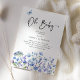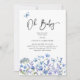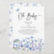 Linda cor d'água, flor silvestre azul Oh convite para chás de fraldas. Design apresenta florais azuis e lilases empoeirados e um modelo elegante de chá de fraldas que pode ser personalizado com seus próprios detalhes de evento.