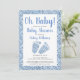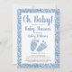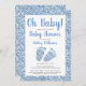 Convites Oh Chá de fraldas de Pés Bebês Azul-Brilhante