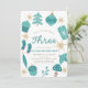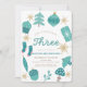 This cute "oh christmas three" boy's 3rd/third birthday invitation features a white background with christmas motifs, such as a tree, present, cupcake, bird, acorn, and ornaments in green shades. The reverse side features a light green background with Christmas tree motifs. Personalize it for your needs. You can find matching products at my store.