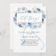Um fundo branco elegante, decorado com flores azuis de cor aquosa e um arco azul. Personalize e adicione um nome e detalhes da parte. Texto: Oh Menino!