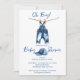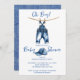 Oh, chá de fraldas azul, jeans modelo convite download digital, jeans bonitinhos de denim de bebê pendurados em uma linha azul jeans boné simples e minimalista convite para chás de fraldas modernos.
