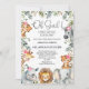 Oh Girl Safari Foliage Chá de fraldas Invitation Sweet safari — convite para chá de fraldas de meninas com sete lindos animais da selva, flores cor-de-rosa, algumas folhagem e caligrafia moderna. Este convite de chá de fraldas com o tema safari é ideal para o chá de fraldas com o tema safari de uma menina.