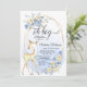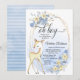 Convite de chá de bebê com cervo menino com um adorável cervo bebê e Oh Menino em um fundo de moldura dourada e floral em aquarela azul e dourada e fundo opcional no verso. Este convite de chá de bebê oh menino em aquarela é facilmente personalizado para o seu evento, basta adicionar nossos detalhes. Você pode mover ou remover o gráfico de texto oh menino e também pode escolher entre o fundo bege ou azul no verso. Basta colocar o que você deseja em cima do outro.