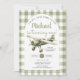 Oh Meu Deus, como voa no avião Aniversário Sage Green Gingham Invitation