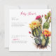 Convite para chás de fraldas. Cactus com Blooms Florais. Garota! Simples. Minimalista. Bonita. Quadrada.