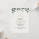 Elegante verde Eucalyptus chá de fraldas convite. Apresenta um arranjo de folhas e folhagem de aquarelas, que leva ao cabeçalho do chá de fraldas em letra chic manuscrita.