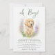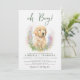 Convide seus amigos e família para comemorar a chegada de seu novo bebê com este adorável convite para chuveiros de bebês, acessórios e presentes de ouro. Este convite para o chá de fraldas apresenta um recuperador de ouros pintados manualmente, perfeito para amantes de cães! A design é moderna e moderna, com um esquema de cores verdes sábias e texto "Oh Boy" para celebrar a chegada de um menino. COPYRIGHT © 2023 Judy Burrows, Black Dog Art - Todos Os Direitos Reservados. Bolinho Ouro de Retriever Cachorro Cachorro Cachorro Convidado