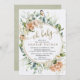 Verniz de eucalipto aquoso, rosas brancas e rosa com uma elegante armação de ouro e as palavras "Oh Baby" numa falsa lamparina dourada e bela caligrafia cardíaca. Um convite para chá de fraldas na moda que irá definir o tom para o seu evento elegante. Para personalização mais avançada deste design, basta selecionar o botão "Personalizar" acima!