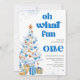 Modern Blue Tree First Birthday Invitation – Personalized Festive Fun Celebrate your baby Boy's first birthday in style with this modern and playful flat invitation!