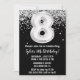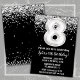 Convite de aniversário preto e branco 8.ª convite de aniversário de idade 8 com brilho e escrevendo moderno de escrita e balões de folha divertida.