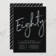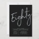 Celebre seu dia especial com este simples convite de aniversário na moda. Este design apresenta um script de pincel "Oitenta" com um layout limpo em um plano de fundo preto. Você pode personalizar o texto e a cor do plano de fundo. Há mais designs e suprimentos de festas disponíveis no meu compro, BaraBomDesign.