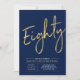 Celebre seu dia especial com este simples convite de aniversário na moda. Este design apresenta um script de pincel "Oitenta" com um layout limpo na combinação de cores azul e ouro do marinho. Há mais designs e suprimentos de festas disponíveis no meu compro, BaraBomDesign.