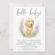 Convide seus amigos e família para comemorar a chegada de seu novo bebê com este adorável convite para chuveiros de bebês, acessórios e presentes de ouro. Este convite para o chá de fraldas apresenta um recuperador de ouros pintados manualmente, perfeito para amantes de cães! A design é moderna e moderna, com um esquema de cores verdes sábias e texto de "olá, bebê" para celebrar a chegada do seu novo bebê. COPYRIGHT © 2023 Judy Burrows, Black Dog Art - Todos Os Direitos Reservados. Olá Bebê Cachorro Moderno Sage Convite para Chá de fraldas Verde