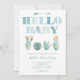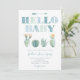 Cartões de convite para Chás de fraldas modernos e frescos com cacto de aquarela / design de pera espessa.