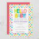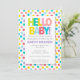 Chá a Mamãe-para-ser com amor com este adorável convite de chá de fraldas! Apresenta um colorido brilhante "OLÁ BABY!" texto com fundo de bolinhas divertido. Perfeito para qualquer chá de fraldas neutro de gênero e de gênero!