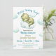 Olá, Menino! Chá de fraldas Azul e Verde bonito convidando um dinossauro bebê dormindo nas nuvens. Que maneira fofa de compartilhar as notícias sobre seu pequeno no caminho e celebrar. Personalize facilmente todo o texto - Kate Eden Art