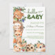 Woodland Criaturas Olá, Chá de Bebê, uma escolha encantadora e encantadora para celebrar a chegada do seu pequeno. Feito com cuidado, este convite apresenta uma linda cena de floresta com aquarela, repleta de adoráveis animais florestais como raposa, coruja, coelho, urso, corpo giratório e esquilo cercado por verde-luxuoso com bagas. As cores suaves do pastel natural e os detalhes complexos adicionam um toque de elegância, fazer-o perfeito para um chá de fraldas. Este convite expele um sentimento de sofisticação e certamente impressionará seus convidados. Personalize o convite com o seu próprio texto e detalhes, criando um convite único e memorável para esta ocasião especial que o nosso Convite para Chá Woodland Creatures Hello Baby Boy é a escolha perfeita para dar o tom para uma alegre celebração de chá com tema rústico. Criado por SweetFindDesigns