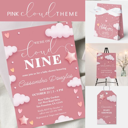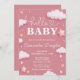 Convites Olá, Chá de fraldas Moderno de Nuvens Rosa