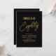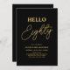 Convide seus convidados com este convite de 80 de na moda. Este design apresenta um script moderno "Hello Eighty" no tema preto e dourado. Você pode personalizar todo o texto. Os suprimentos de festa correspondentes estão disponíveis no meu compro BaraBomDesign.