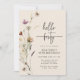 Olá, convite de aniversário do Quarenta Boho. Este na moda e elegante convite para aniversário de 40 anos apresenta lindas flores silvestres de cor d'água pintadas manualmente, organizadas como um adorável buquê lateral com um elegante roteiro escrito à mão. Encontre itens correspondentes na Coleção de Casamentos de Boho Wildflower.