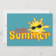 Convide sua família e amigos para sua divertida festa de verão com estes belos convites brilhantes. A palavra Summer em laranja e amarelo está no centro da design em letras grandes. Acima do U e M está a palavra Hello em laranja. O pico no verão é um brilhante sol amarelo e laranja feliz. O sol tem um grande sorriso brilhante branco e sombras escuras. Modelos são lugares para facilitar a adição de seus próprios detalhes.