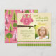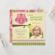 Convide os convidados para o segundo aniversário do seu pequeno com este adorável convite de foto de coruja rosa, apresentando "Olhe quem está fazendo dois anos!" em rosa e verde oliva divertidos. Uma doce coruja ilustrada se empoleira em um galho ao lado de um espaço emoldurado para a foto do seu filho, com detalhes listrados em rosa e verde na parte inferior. O verso apresenta um charmoso padrão de árvores coloridas da floresta em tons rosa, verde e marrom. Todo o texto é totalmente personalizável para combinar com os detalhes da sua celebração.