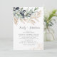 Este Convite para Casamento Botânico do Branch de Oliva Verde - apresenta galhos verdes e ouros de oliveiras, gotas de ouro com texto moderno. O reverso deste convite de casamento é elegante verde-oliva escuro.