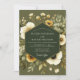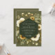 Experience a romantic woodland atmosphere with this elegant design. A deep olive green background sets a moody and sophisticated tone for your special day. Delicate, painterly blooms of ivory anemones and golden poppies are artfully arranged among verdant foliage, creating an earthy and botanical aesthetic.