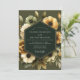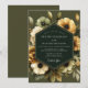 Embrace a mood of sophisticated elegance with this artful and dramatic design. A stunning arrangement of cream, sage, and golden ochre anemones blossoms against a deep olive green backdrop. The painterly quality of the florals creates a timeless and romantic atmosphere for your special day.