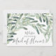 O convite à apresentação de propostas de madrinhas de casamento botânica moderna inclui um regime de gotas de azeitonas e de folhas verdes. Imprima sua madrinha de casamento com este convite botânico.