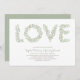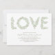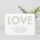 Cartas do ramo de oliveira em tons de cinza verde soletra o AMOR por um casamento perfeito do pomar. Personalize a forma do cartão, a fonte, a cor da fonte ou a cor no reverso.