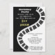 Convite de aniversário com um tema musical. Teclas de piano de teclado preto e branco em um padrão de onda.