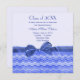 Design de onda azul moderna com arco azul puro e borda de fita para convite para formatura.