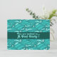 Um convite de festas para uma festa de piscina com um retrato da anca, um gráfico legal de ondas de água de rabisco em azul e aqua. O texto deste convite é perfeitamente personalizável para incluir seus próprios detalhes pessoais.