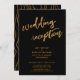 A distinção deste ousado conjunto se deve à fonte manuscrita moderna e casual usada para frases de destaque e ao padrão de ondas soltas colocado sobre o fundo. As ondas evocam a ideia de serpentinas comemorativas. Nesta peça, a fonte manuscrita foi usada para criar um gráfico que representa as palavras "recepção de casamento". Tanto este texto de cabeçalho quanto o padrão de fundo foram adornados com um padrão de folha de ouro falso. Use os campos do modelo para adicionar seus detalhes pessoais e tornar este design festivo seu. O fundo preto pode ser alterado para qualquer cor que você preferir. Entre em contato para qualquer solicitação especial ou para obter ajuda na personalização. // 100 //