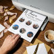 Espessura de 18 pt / Gramatura de 120 lb. Branco suave, textura delicada.