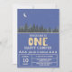 Celebrate your one year old with this modern and dreamy One Happy Camper Under the Stars invitation. Perfectly blending a camping theme with a celestial starry night aesthetic, this design features a periwinkle blue sky with a crescent moon and stars.