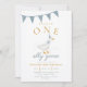 Convites ONE Silly Goose Blue Gingham Boy First Birthday