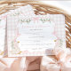 Add a sweet and playful touch to your celebration with this "Adopt a Goose" certificate card. Featuring an adorable goose illustration with a party hat, soft pink gingham, delicate florals, and charming bow details, this set is perfect for a first birthday, baby shower, or whimsical garden-themed party.