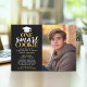 Um Convite para Festa de formatura do Tema Smart Cookie — Um tema de caligrafia de salto com uma foto ao lado. A parte de trás do convite tem um padrão moderno de meio século de tendência. Adicione qualquer ano para mostrar este design elegante e moderno. Isto pode ser utilizado para qualquer formando - segundo grau, universidade, escola de formando, escola de medicina ou mesmo escola de comércio.
