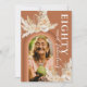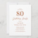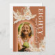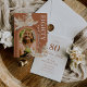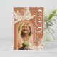 Convites de aniversário russos de 80 boêmia com fundo laranja queimado com um arco-íris, uma foto da aniversariante, folhas secas de palma do deserto com aquarela, grama-pampas, florais e um elegante modelo de texto de celebração do dia 80 no reverso que é fácil de personalizar.