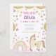 Convites Ontem do Unicorn Rainbow Pink Dourado Sparkles